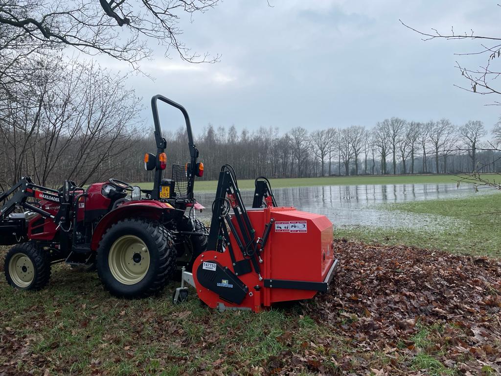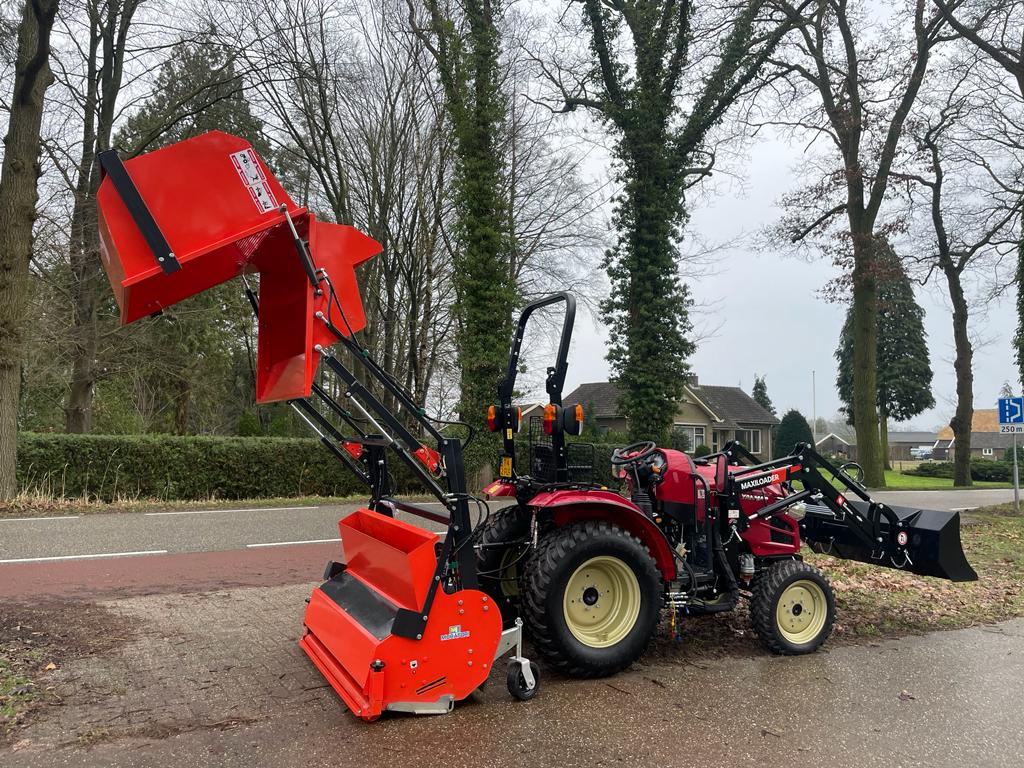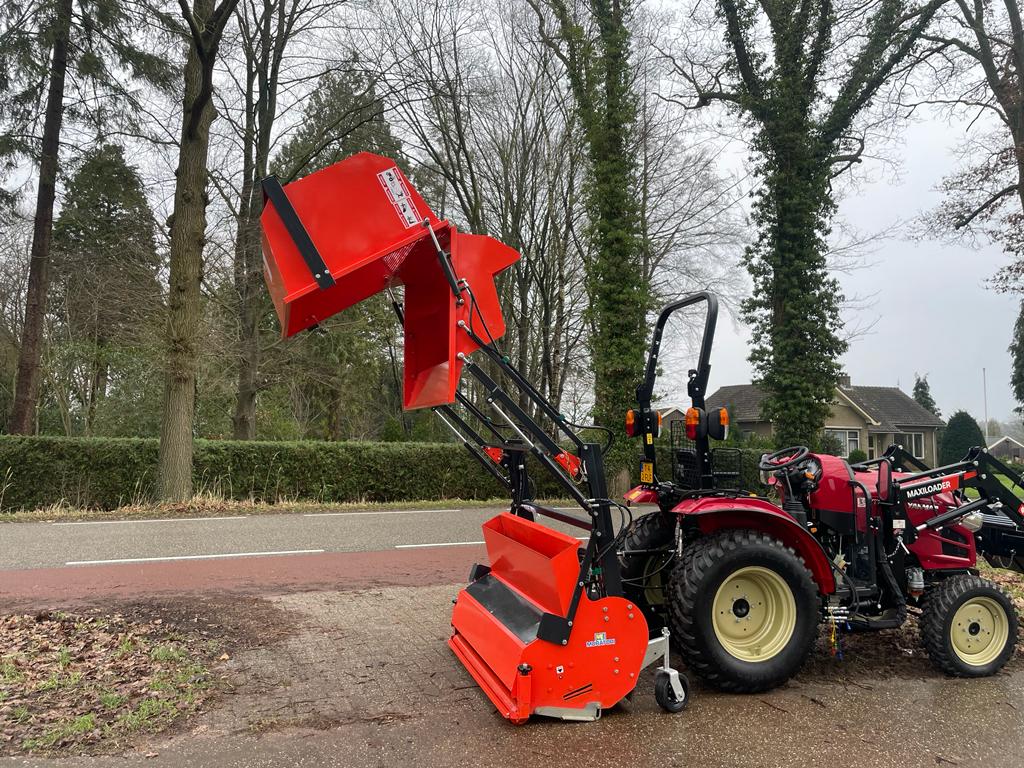Deze machine met hoogkiep kan de gewasresten kiepen tot 2 Mtr. hoog in een aanhanger of container.